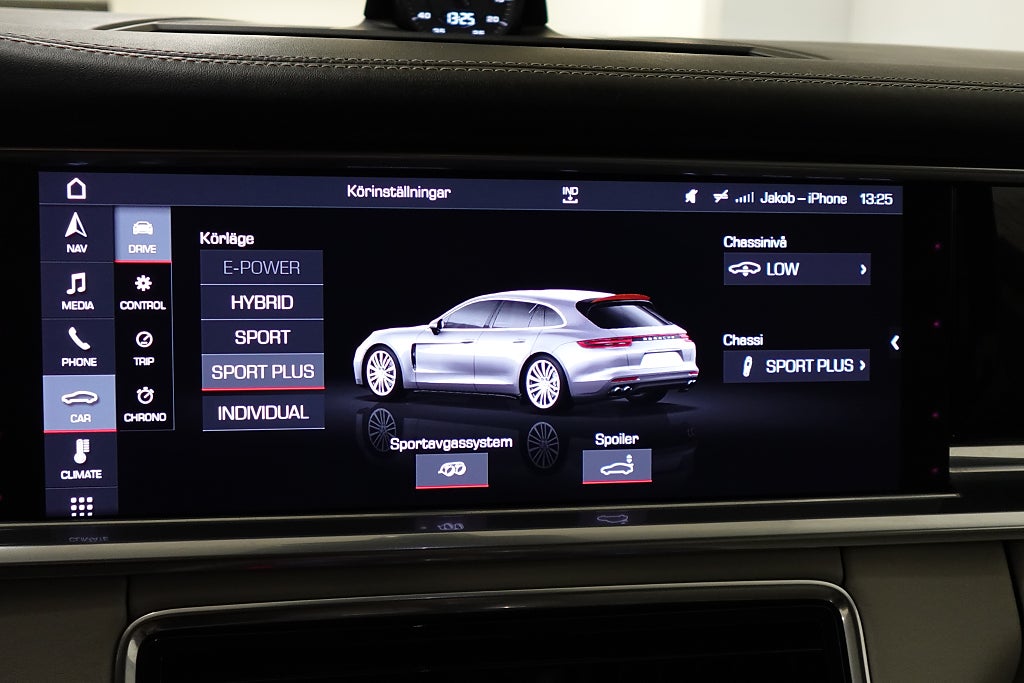 Nu har vi äntligen fått in en välutrustad Porsche Panamera 4 E Hybrid-Sport Turismo som kommer utrustad med Sport Chrono, Sportavgassystem (inkl sportavgasrör i högglanssvart), Power steering plus, Soft close-funktion för dörrar, Komfortsportstolar fram inkl. minnespaket, PDLS, Farthållare, Night Vision, Rattvärmare, Bromsok i svart, Backkamera, Parkeringsvärmare, PASM, Adaptiv Luftfjädring, 4-Klimatzoner och mycket mer!