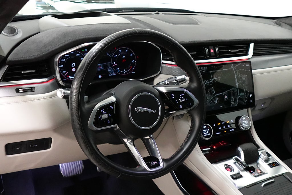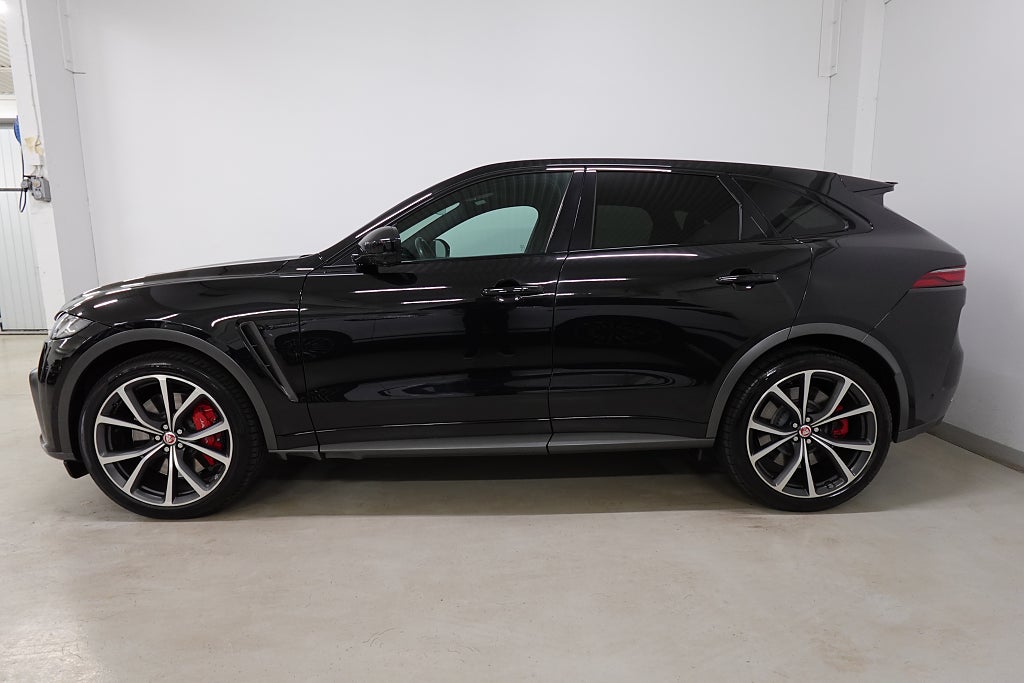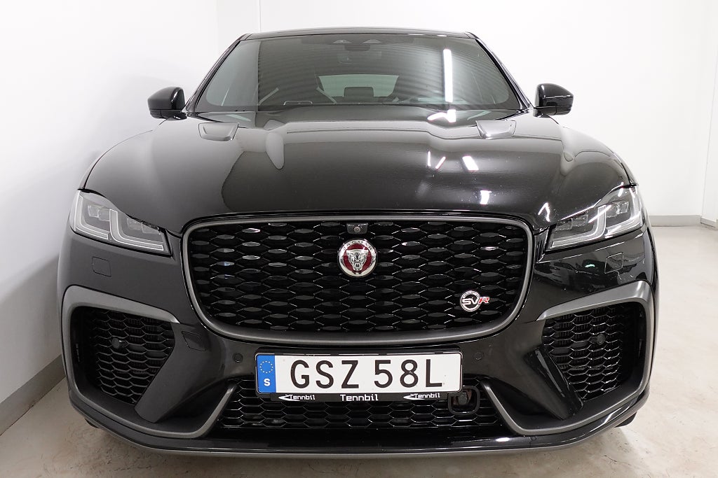 Nu har vi äntligen fått in en Jaguar F-Pace SVR som kommer utrustad med Panoramaglastak, 360° Kamera, Head up-display, 14-vägs elstolar fram (med minne), Bluetooth, Apple CarPlay, Android Auto, LED Strålkastare, Kylt handsfack, Keyless, Dödavinkelvarnare, Ventilerade säten fram, Navigator, Broms-assistans, SVR Sportstolar, SVR Sportratt, El baklucka, Rattvärme, Trådlös telefonladdare, Adaptiv Farthållare, Motorvärmare, Klädsel (Windsor-läder/Suedecloth), Meridian hötalarssystem, SVR Sportavgassystem och mycket mer!