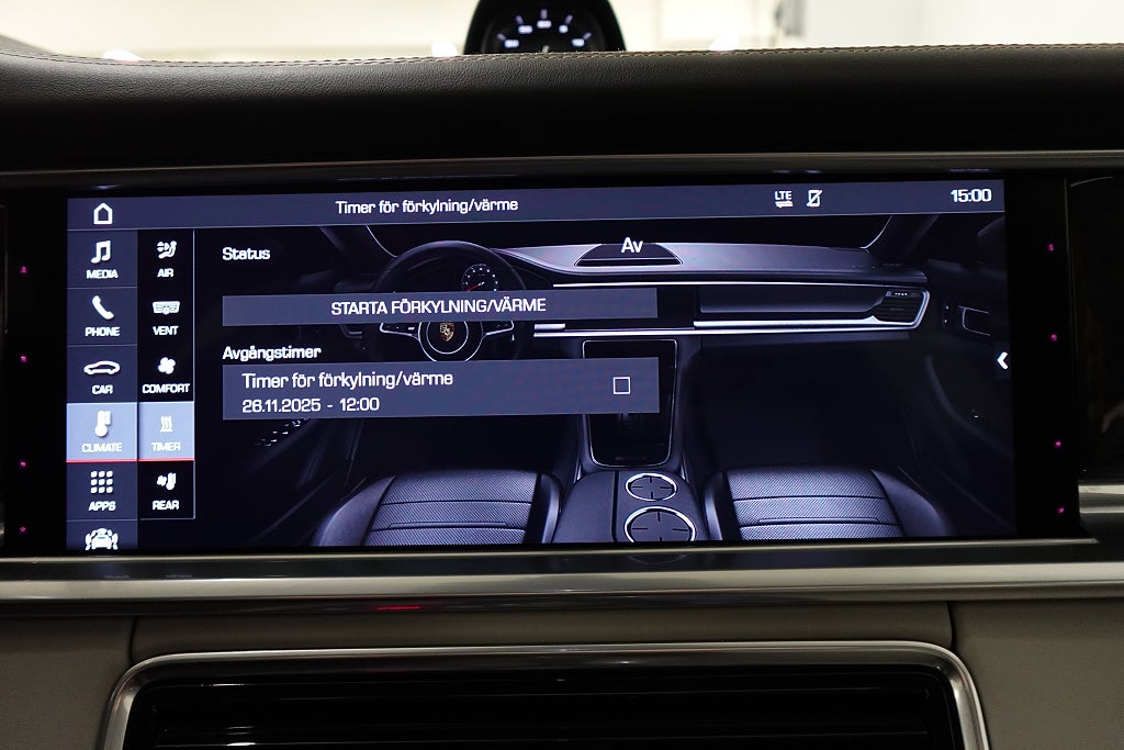 Nu har vi fått in en otroligt fin Porsche Panamera 4 E-Hybrid Sport Turismo PDK med i princip all utrusning som man kan välja till så som Night Vision, Softclose dörrar, Bakaxel styrning, Öppningsbar glastak, Parkeringsvärmare, PDLS+ Matrix Beam, PASM (Adaptiv Luftfjädring), BOSE Högtalarsystem, 14-vägs stolar med minne, Massage stolar fram, Ventilerade säten fram, Adaptiv Farthållare, Sport Chrono, Head up-display, 360° Kamera, Navigator, El baklucka, Bluetooth, Android Auto, Apple CarPlay och mycket mer!