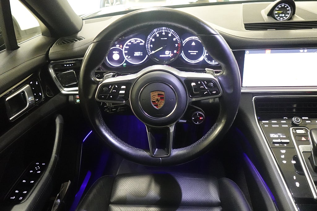 Nu har du chansen att äga en sportig och lyxig Porsche Panamera 4 E-Hybrid – en bil som kombinerar kraft, elegans och miljömedvetenhet på ett sätt som bara Porsche kan. Denna 2018 års modell levererar hela 462 hästkrafter tack vare den kraftfulla hybridlösningen, vilket ger en hisnande körupplevelse med imponerande bränsleekonomi. Bilen är utrustad med bland annat Sportavgassystem (inkl sportavgasrör i högglanssvart), Power steering plus, Porsche entry & drive, Soft close, Led matrix-strålkastare inkl pdls plus, Adaptiv farthållare, Bose surround sound system, Lane keep assist, PASM luftfjädring, 360° kamera, Sport Chrono,